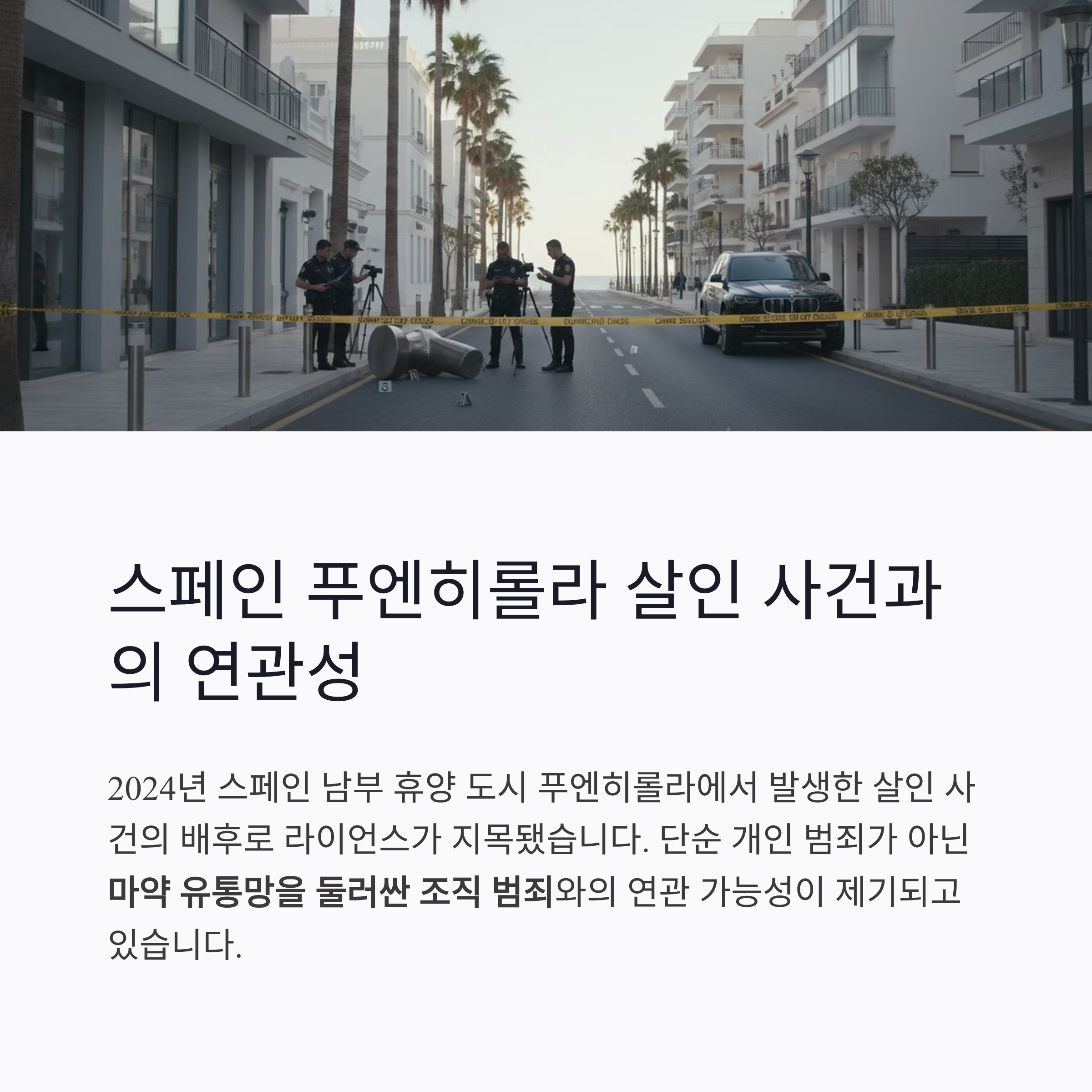 스페인 남부의 휴양 도시 푸엔히롤라에서 발생한 살인 사건은 당시 유럽 전역에서 큰 충격을 주었습니다. 수사 과정에서 라이언스가 배후 인물로 지목되었고, 이후 스페인 당국은 국제 수배 절차를 진행했습니다.