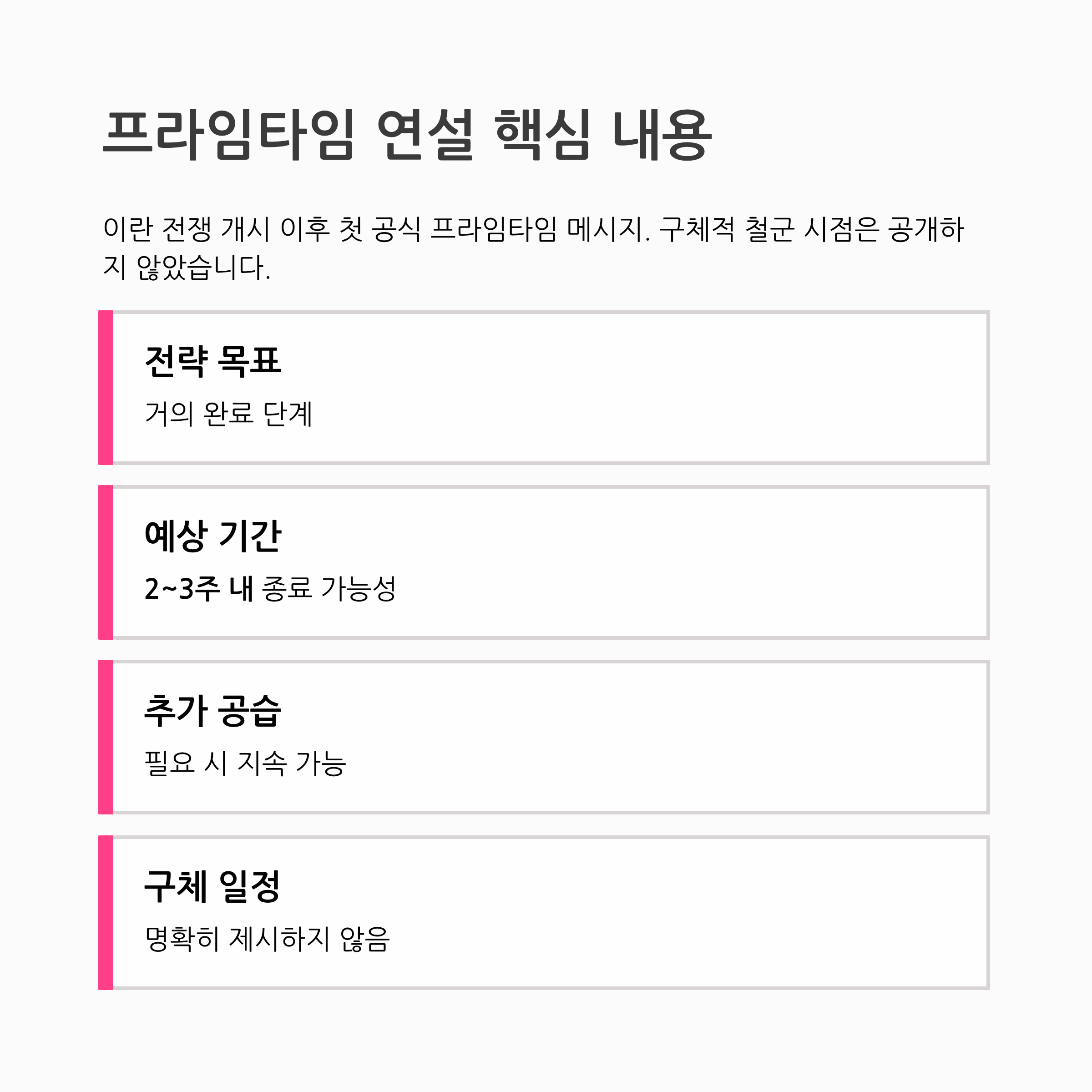 | 추가 공습 | 필요 시 지속 가능 |