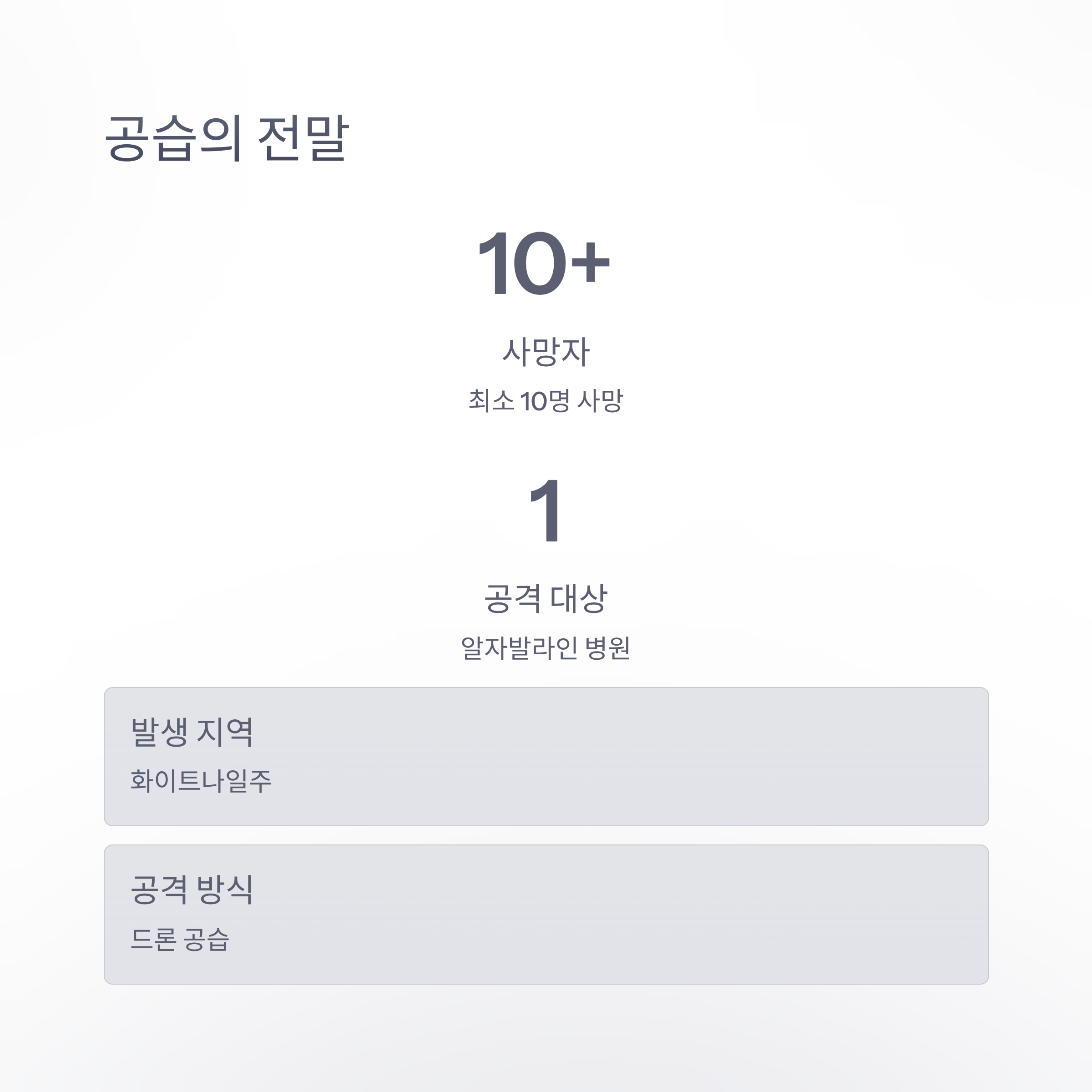 수단에서 발생한 드론 공습이 병원을 강타하며 수많은 사상자를 낳았습니다. 이번 사건은 전쟁 속에서도 보호받아야 할 의료 시설이 공격 대상이 되었다는 점에서 국제사회의 깊은 우려를 불러일으키고 있습니다.