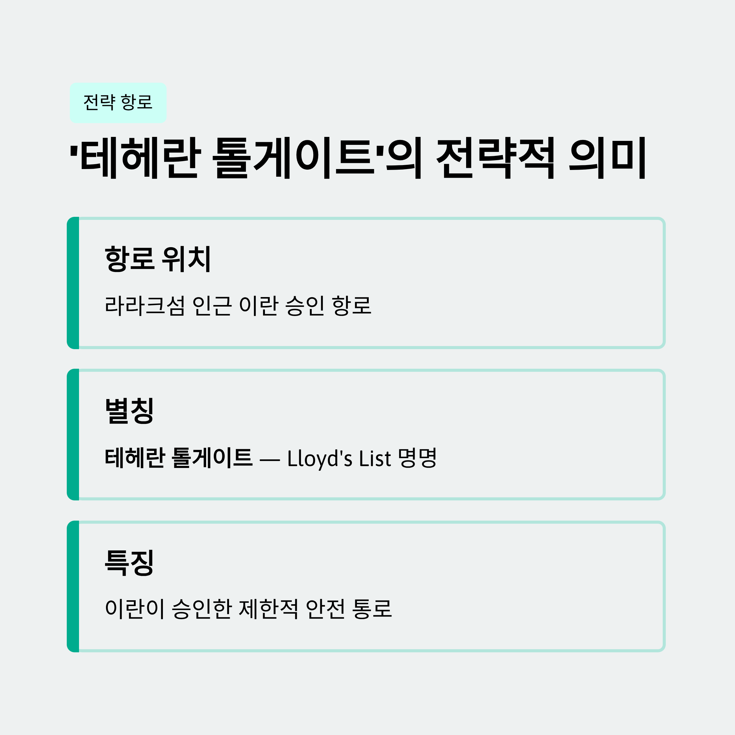 이란 승인 항로 ‘테헤란 톨게이트’의 의미