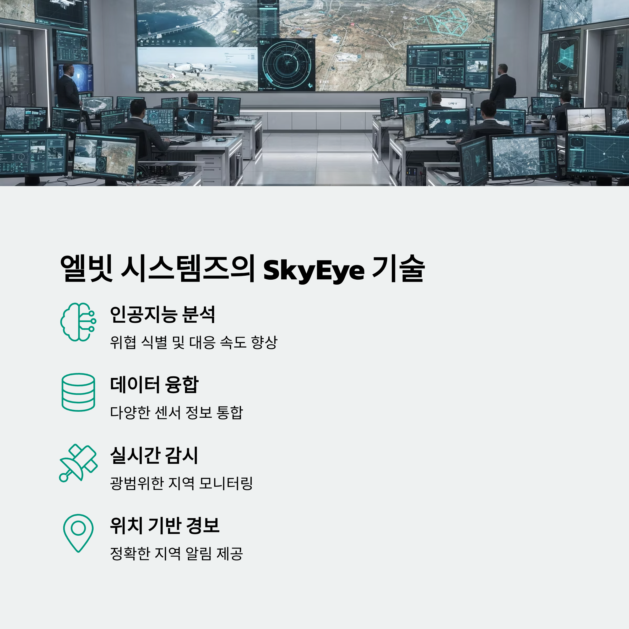 Elbit Systems는 광범위한 지역을 실시간으로 감시하는 SkyEye 기술을 도입해 지속적인 모니터링을 지원하고 있습니다. 첨단 방위 산업과 인공지능의 결합은 현대 전장의 핵심 경쟁력으로 평가받고 있습니다.