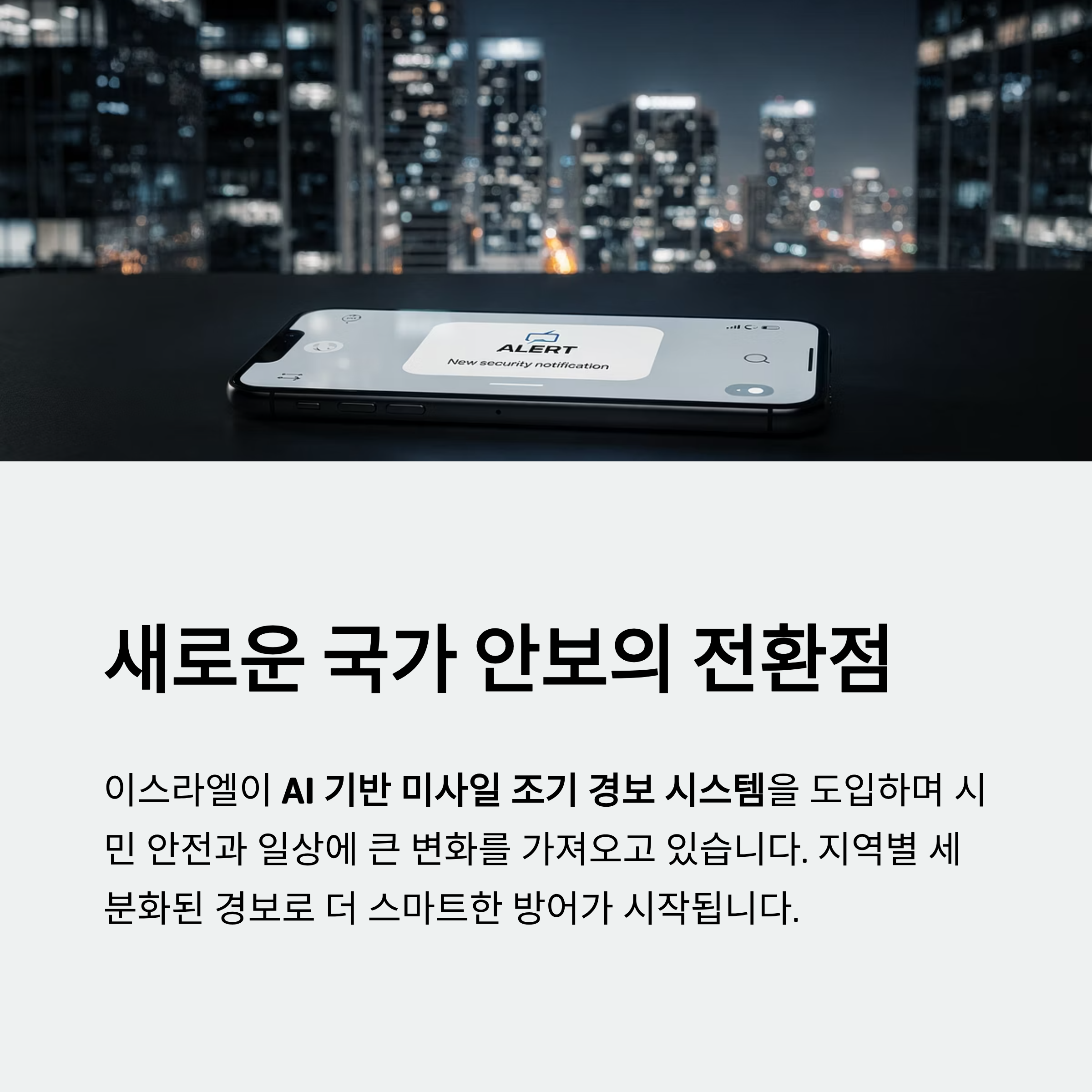 이스라엘은 인공지능을 활용해 미사일 발사 정보를 분석하고, 정밀한 위치 기반 경보를 400만 대 이상의 휴대전화로 전달하고 있습니다. 이 시스템은 불필요한 대피를 줄이고 실제 위험 지역에만 신속한 경고를 제공하며 시민들의 안전을 한층 강화하고 있습니다.