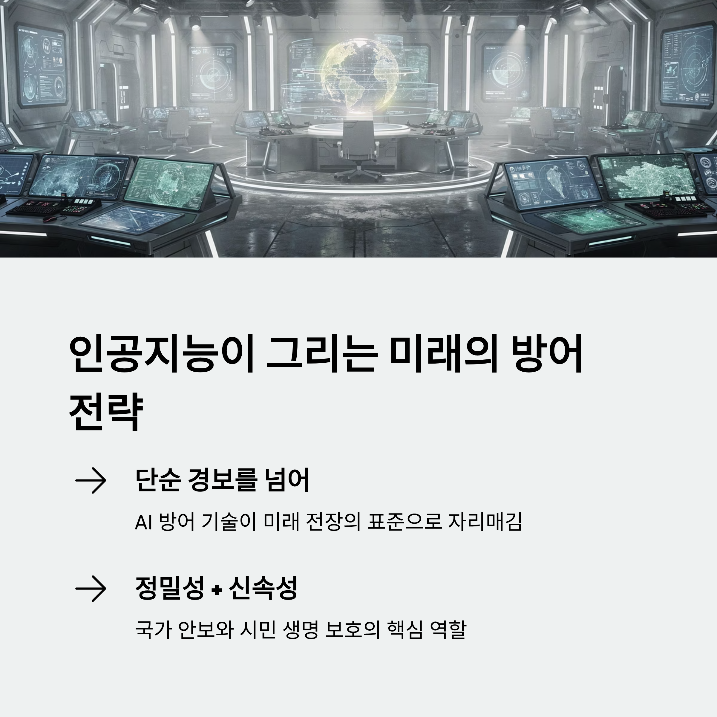 AI 기반 방어 기술은 단순한 경보를 넘어 미래 전장의 표준으로 자리 잡고 있습니다. 정밀성과 신속성을 갖춘 첨단 기술은 국가 안보뿐 아니라 시민의 생명을 보호하는 중요한 역할을 수행하고 있습니다.