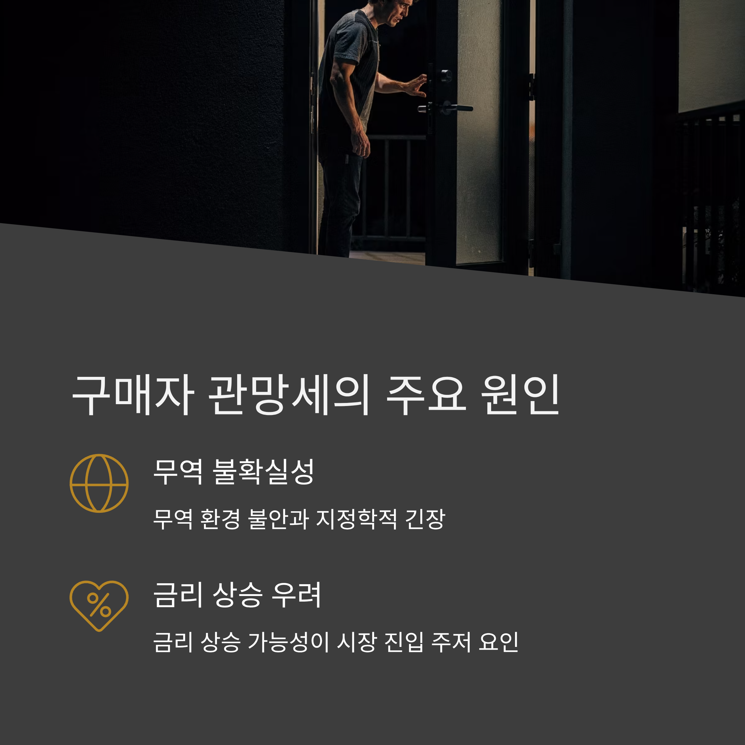많은 잠재 구매자들은 여전히 시장 진입을 주저하고 있습니다. 무역 환경의 불확실성과 지정학적 긴장, 그리고 금리 상승 가능성이 주요 요인으로 작용하고 있습니다. 이러한 외부 변수는 부동산 시장의 단기 변동성을 높이는 요소로 평가됩니다.