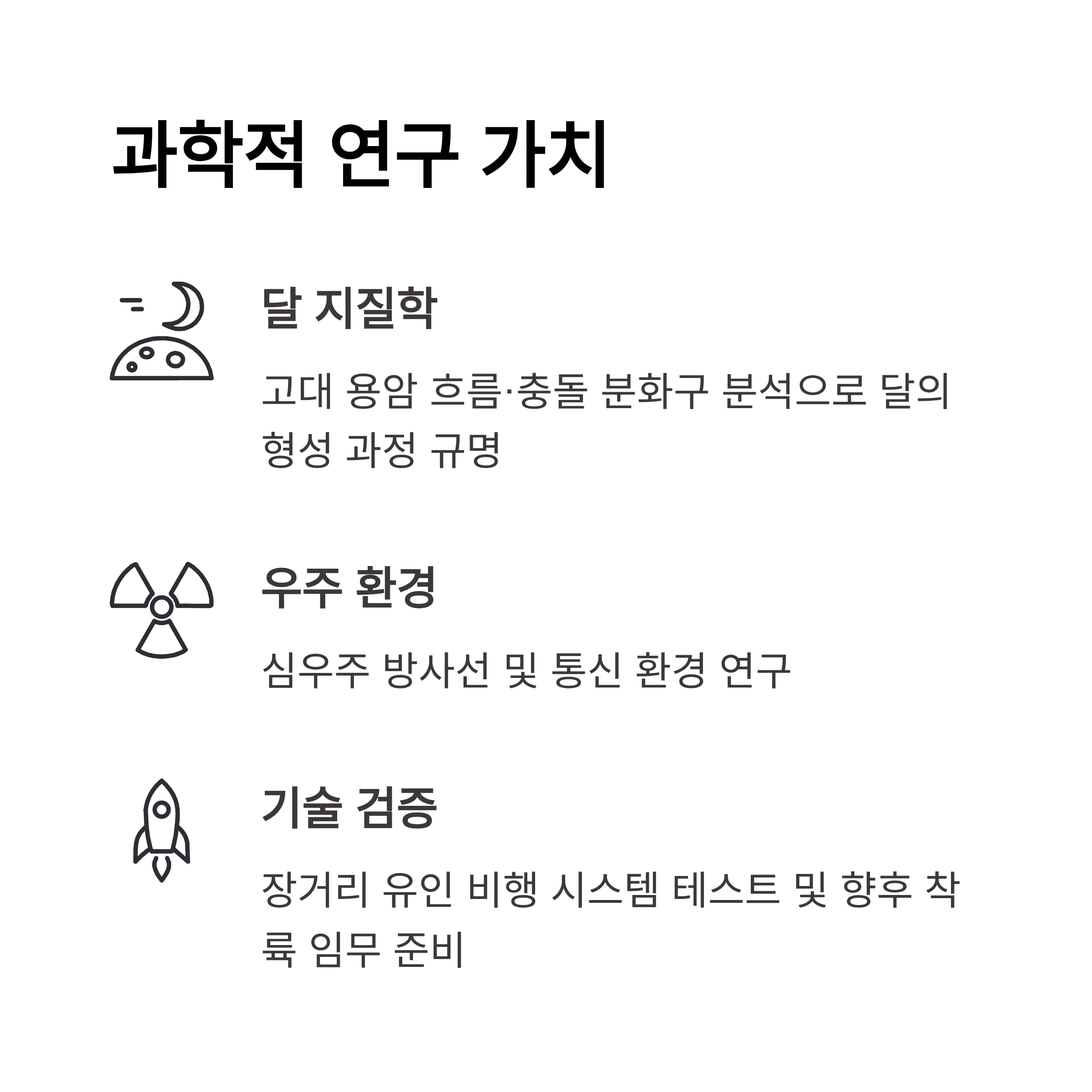 이번 임무에서 촬영된 고해상도 이미지는 고대 용암 흐름과 다양한 충돌 분화구를 포함하고 있어 달의 형성과 진화 과정을 이해하는 데 중요한 자료로 활용될 예정입니다. 연구진은 이 데이터를 통해 달의 지질학적 역사와 태양계 초기 환경을 보다 정밀하게 분석할 계획입니다.