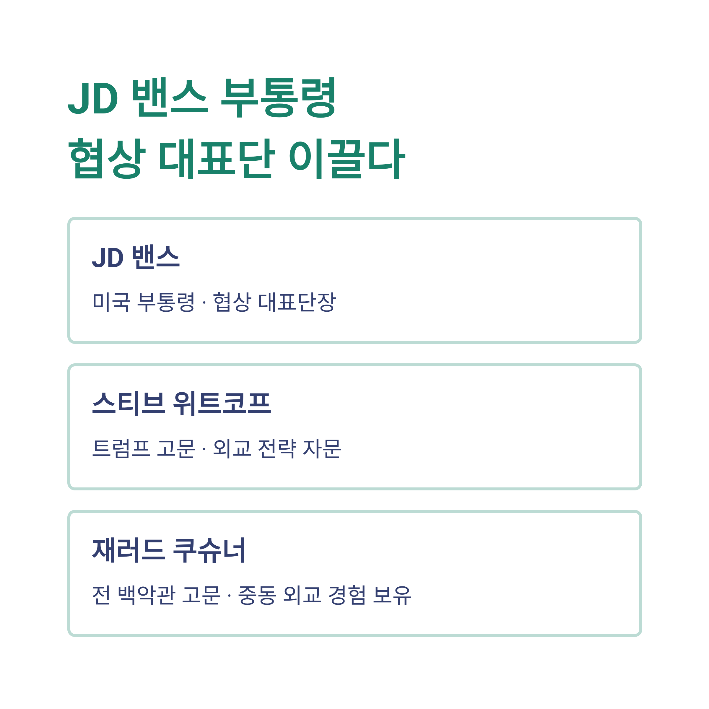 | JD 밴스 | 미국 부통령 | 협상 대표단장 |