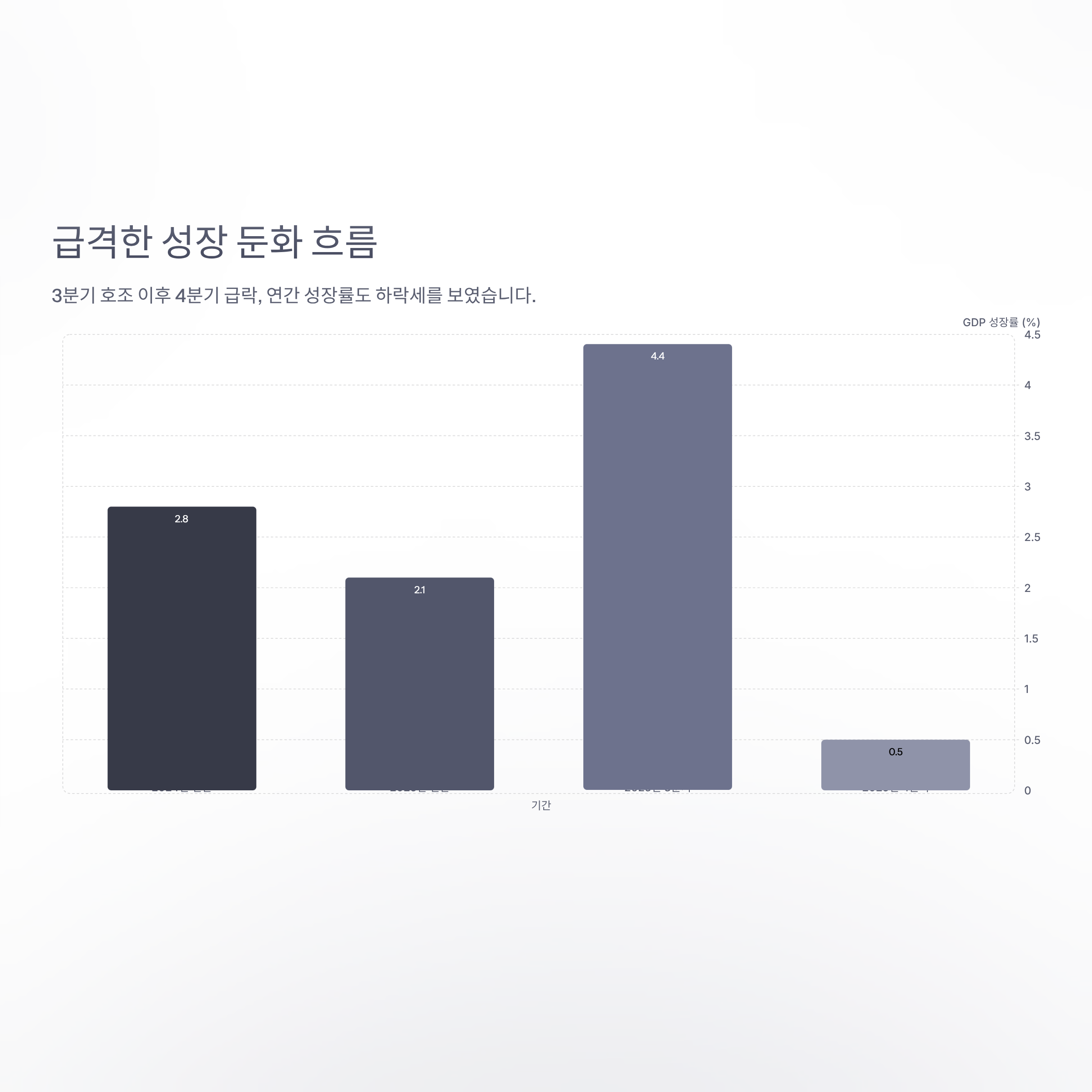 미국의 4분기 국내총생산(GDP) 성장률이 예상보다 낮은 0.5%로 하향 조정되며 경기 둔화 우려가 커지고 있습니다. 특히 연방정부 지출 감소와 소비 증가세 둔화가 주요 원인으로 지목되며, 정부 셧다운의 여파가 경제 전반에 영향을 미친 것으로 나타났습니다.