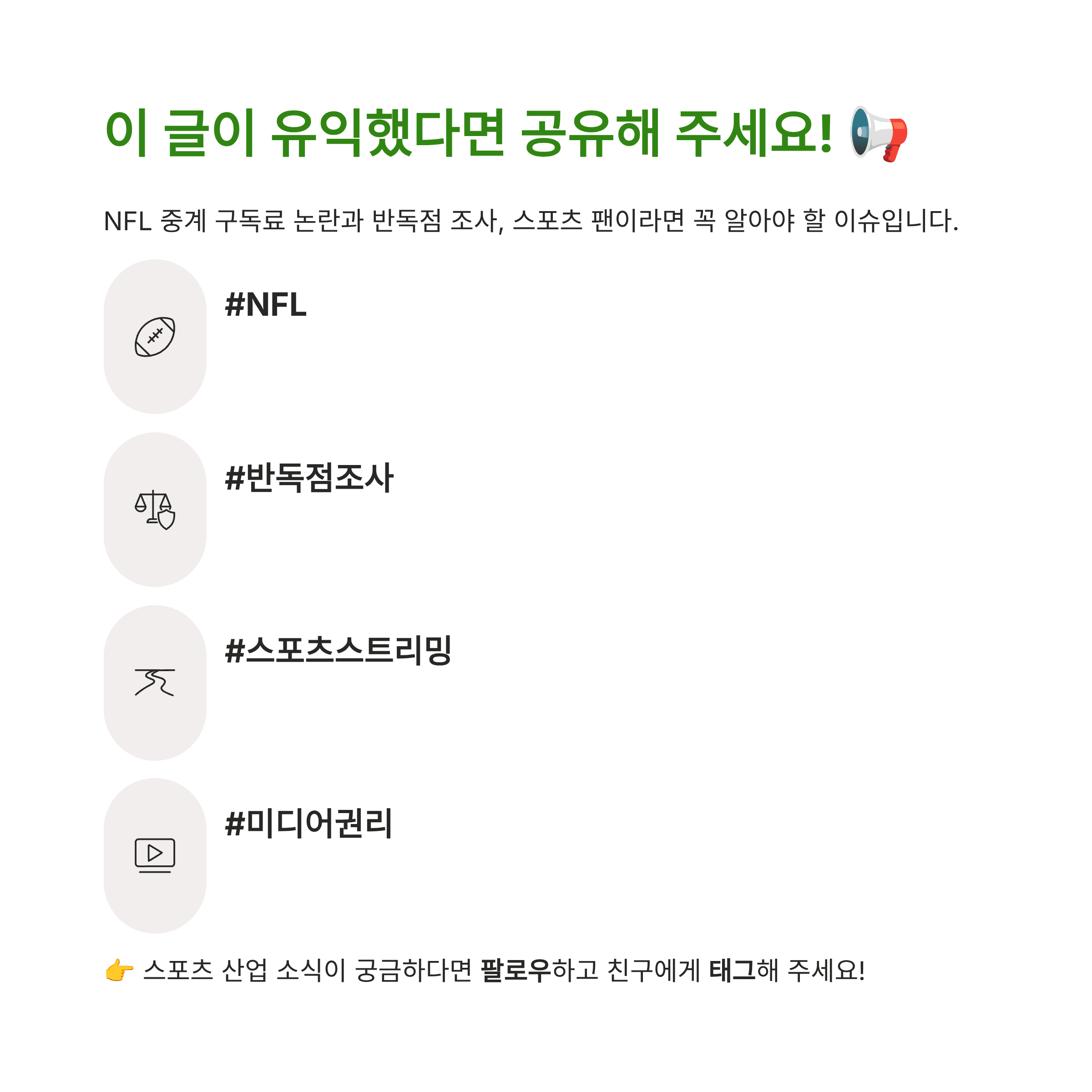 이번 사건은 단순히 NFL에 국한되지 않고, 글로벌 스포츠 리그와 스트리밍 플랫폼 간의 권리 계약 방식 전반에 변화를 가져올 수 있습니다. 소비자 접근성 향상과 공정 경쟁 환경 조성이 향후 핵심 과제가 될 전망입니다.