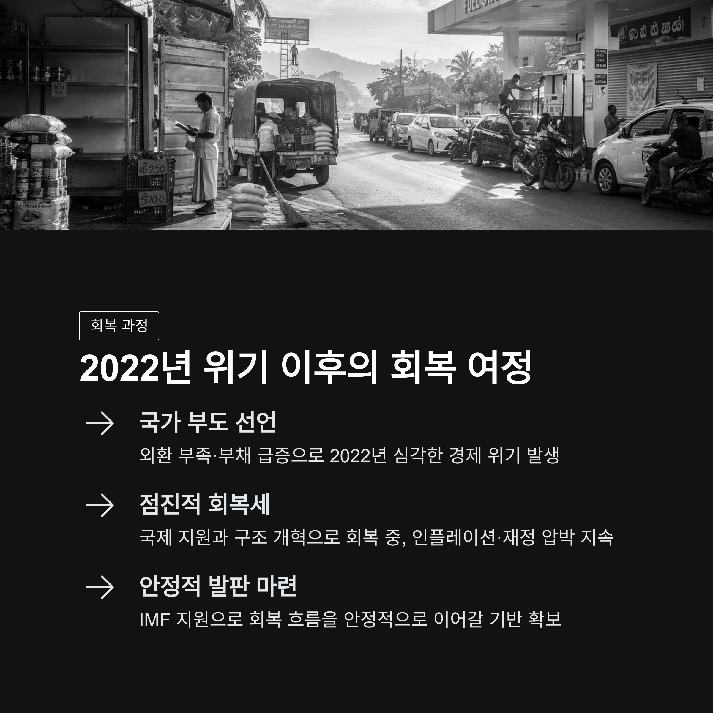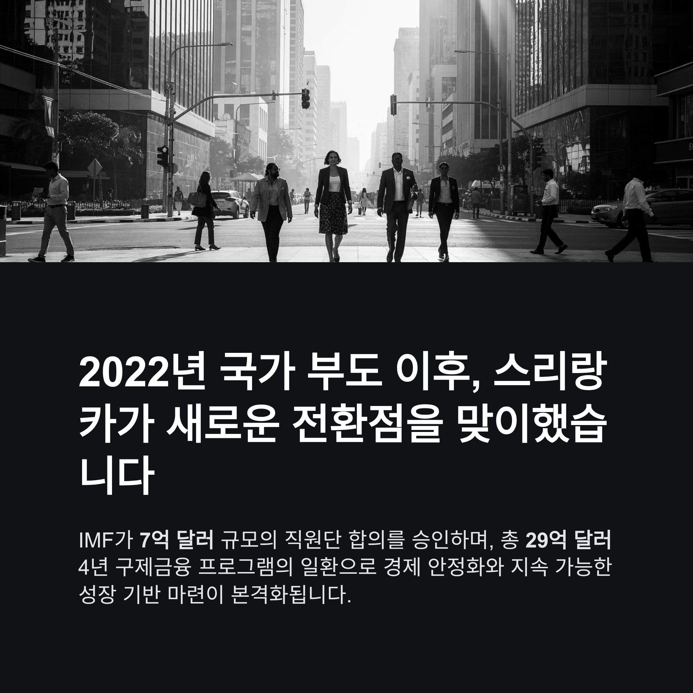 스리랑카는 2022년 외환 부족과 부채 급증으로 국가 부도를 선언하며 심각한 경제 위기를 겪었습니다. 이후 국제 사회의 지원과 구조 개혁을 통해 점진적인 회복세를 보이고 있지만, 여전히 높은 인플레이션과 재정 압박이 지속되고 있습니다. IMF의 이번 지원은 이러한 회복 흐름을 안정적으로 이어가기 위한 중요한 발판이 됩니다.