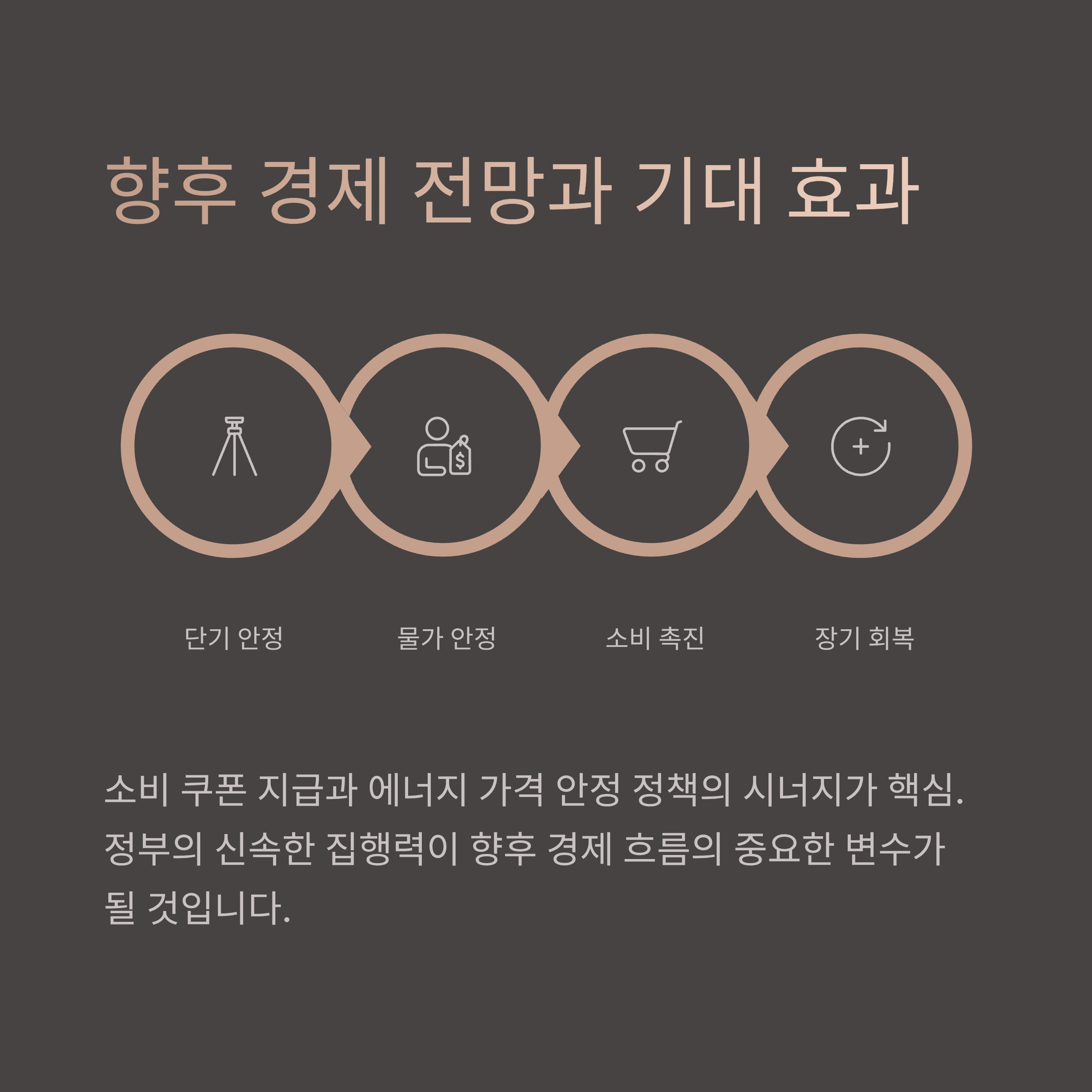 이번 추가경정예산은 단기적으로는 물가 안정과 소비 촉진, 장기적으로는 경제 회복 기반 마련에 기여할 것으로 전망됩니다. 특히 소비 쿠폰 지급을 통한 내수 진작 효과와 에너지 가격 안정 정책이 시너지를 낼 것으로 기대됩니다. 정부의 신속한 집행과 정책 실행력이 향후 경제 흐름의 중요한 변수가 될 것입니다.