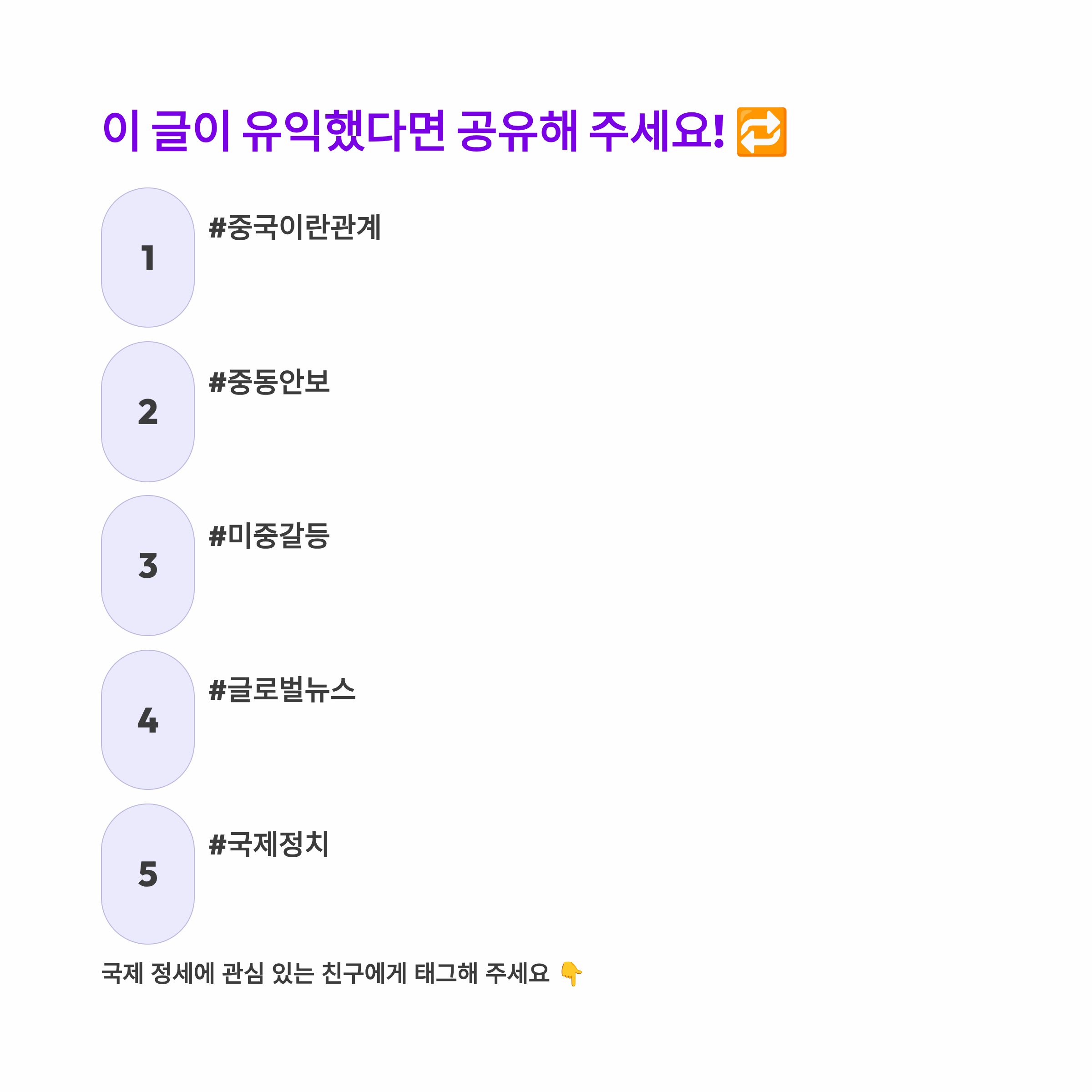 앞으로 중국의 실제 행동과 이에 대한 국제 사회의 대응이 중동 및 글로벌 안보 환경의 방향을 결정할 것으로 보입니다. 외교적 해법과 긴장 완화 노력이 어느 때보다 중요한 시점입니다.