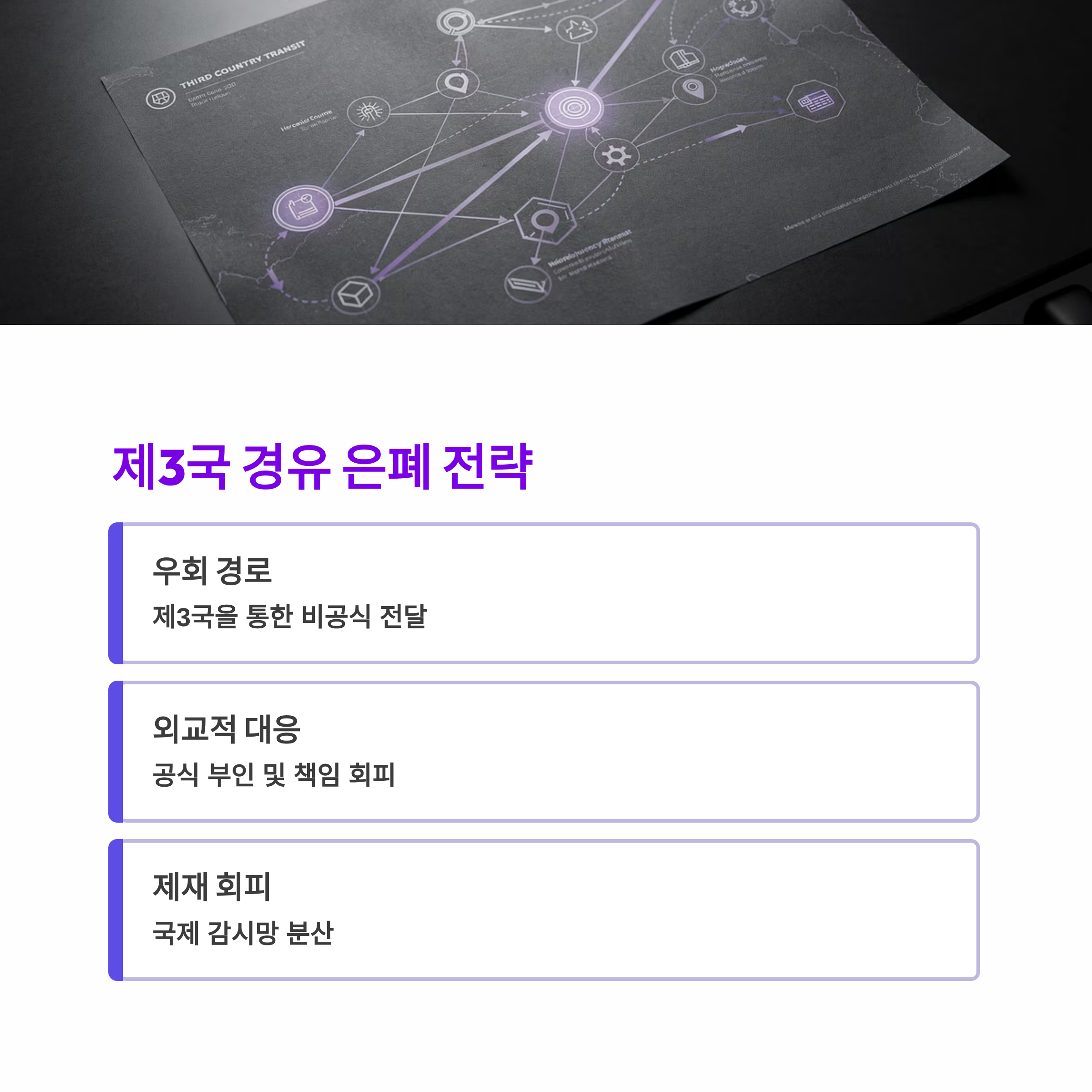 | 우회 경로 | 제3국을 통한 비공식 전달 |