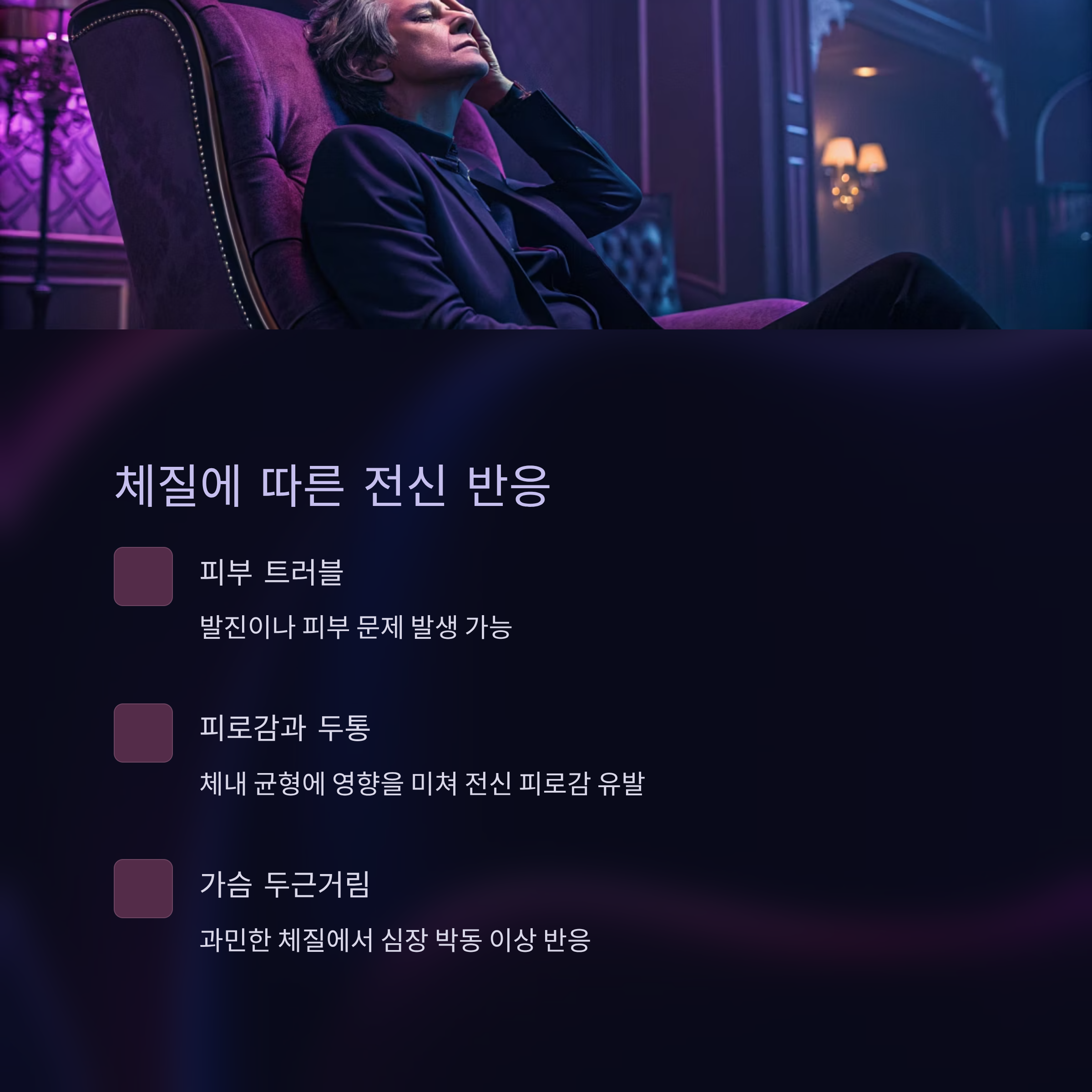 일부는 피부 트러블, 피로감, 두통, 심장 두근거림 등의 전신 반응이 나타날 수 있습니다. 이는 효소 성분이 체내 균형에 영향을 주기 때문이에요.