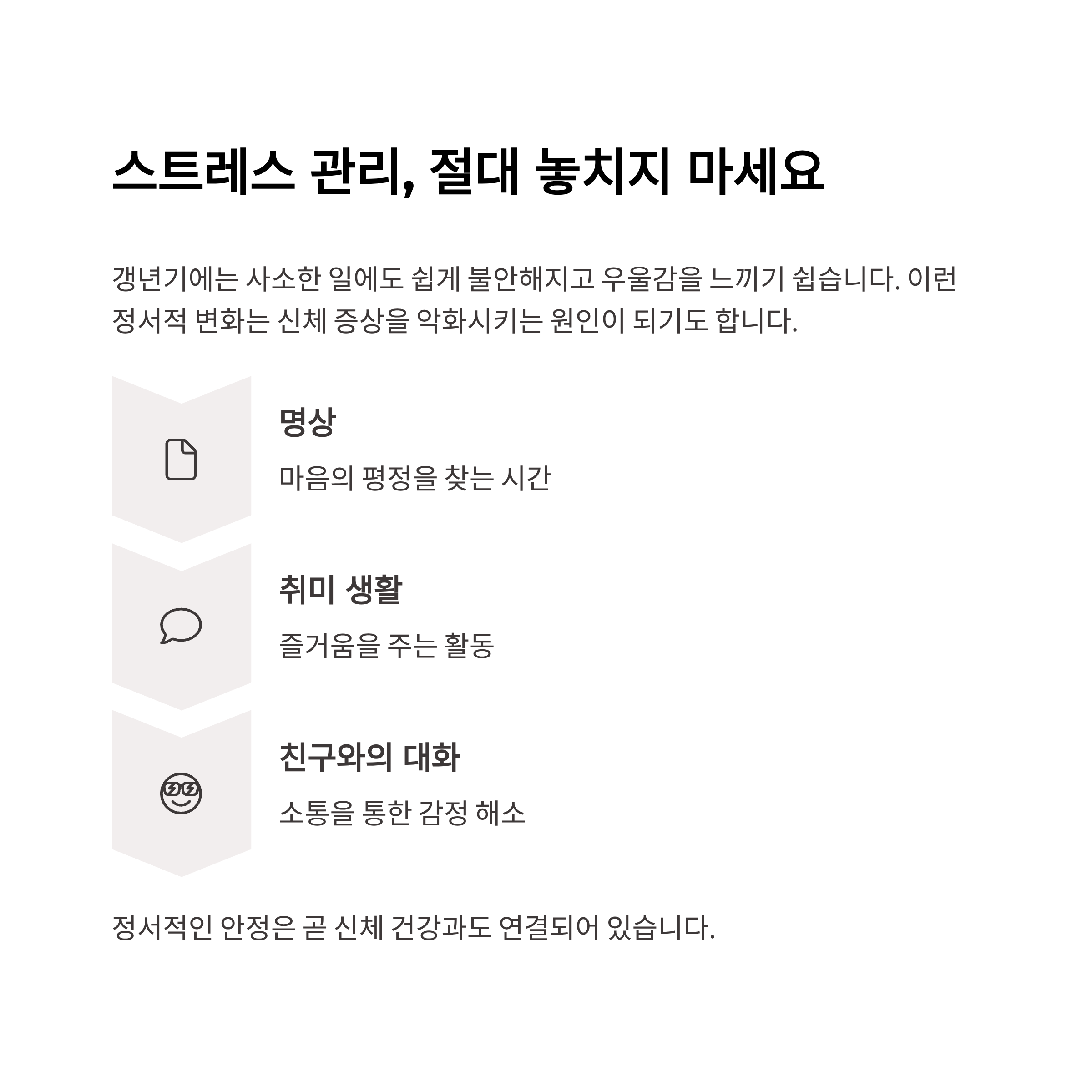 정서적 안정은 신체 건강과 직결됩니다.
