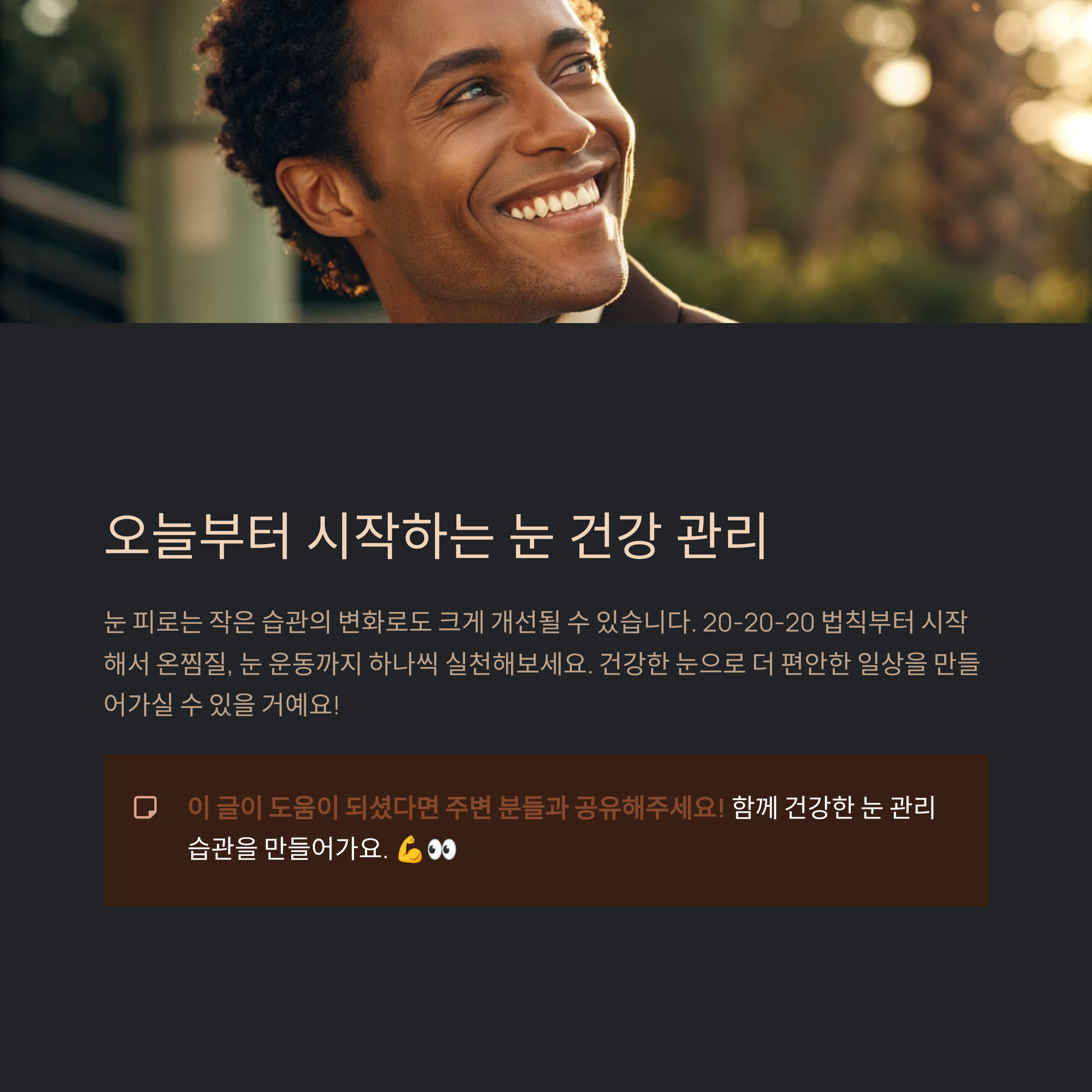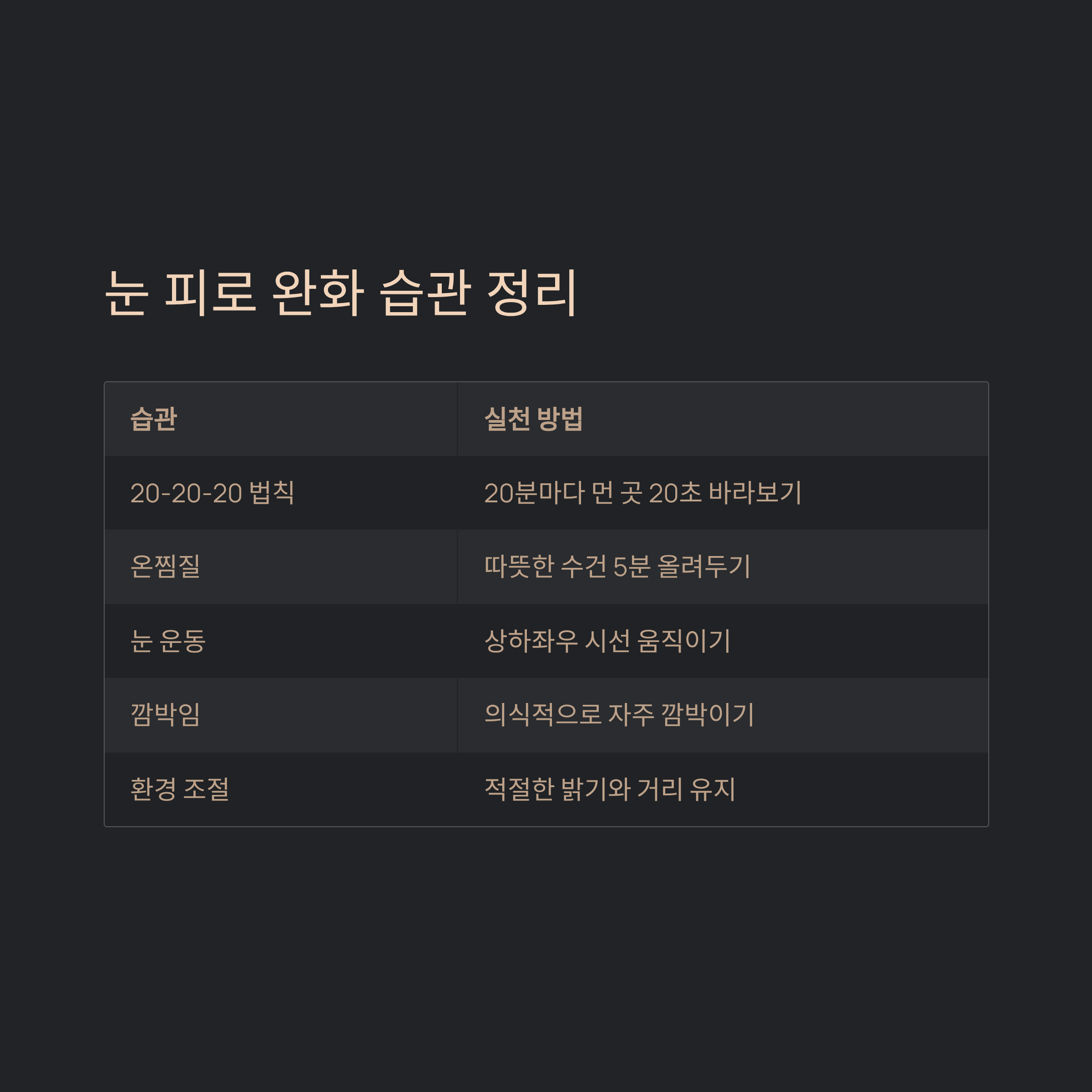 - 눈 피로 해소의 핵심은 휴식과 환경 조정