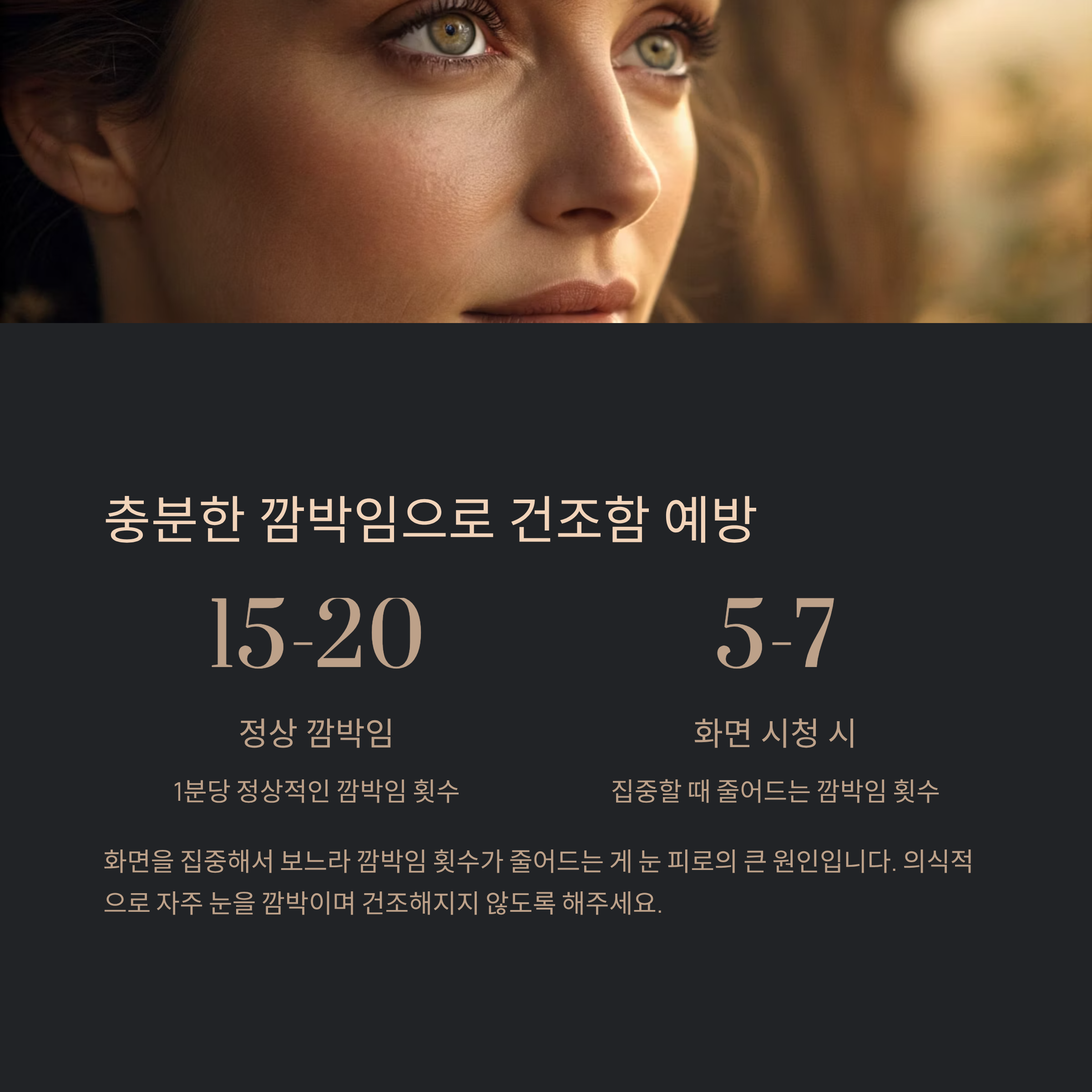 👉 화면 사용을 잠시 중단하고, 온찜질이나 멀리 보기 습관을 실천해 주세요.