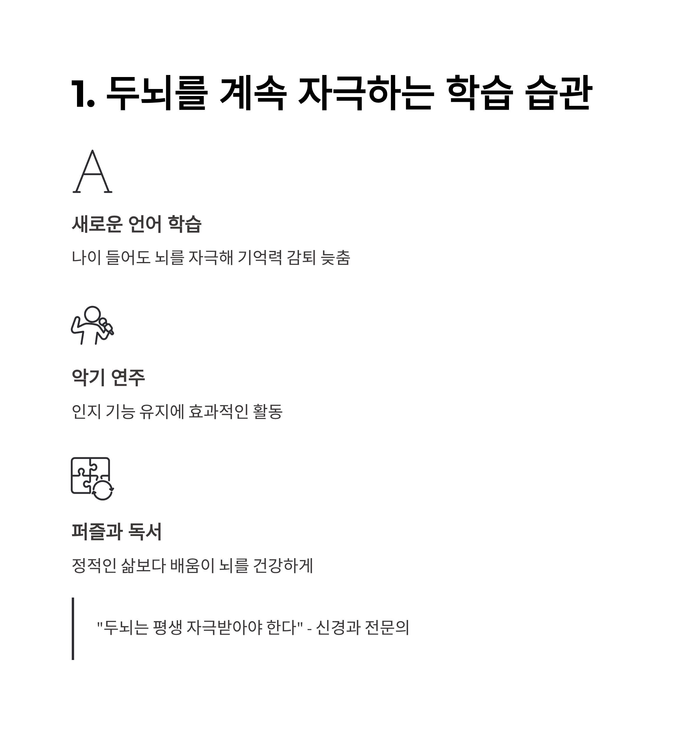 신경과 전문의들은 "두뇌는 평생 자극받아야 한다"고 강조합니다.