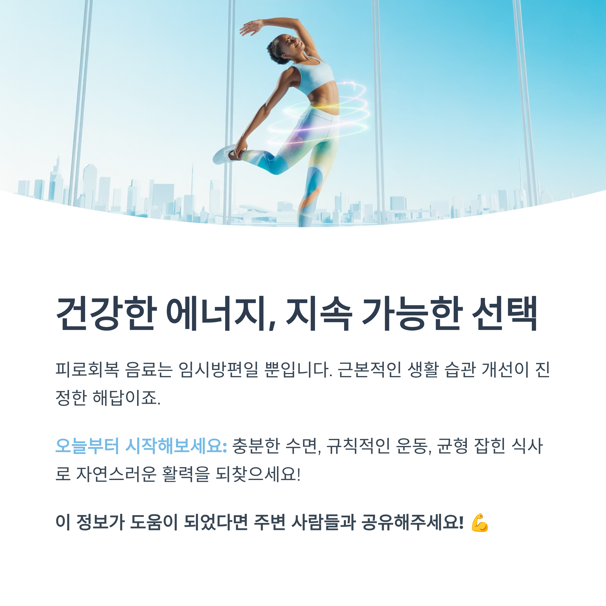 진짜 회복은 충분한 수면과 균형 잡힌 식사, 규칙적인 운동에서 나온다는 점, 잊지 마세요.
