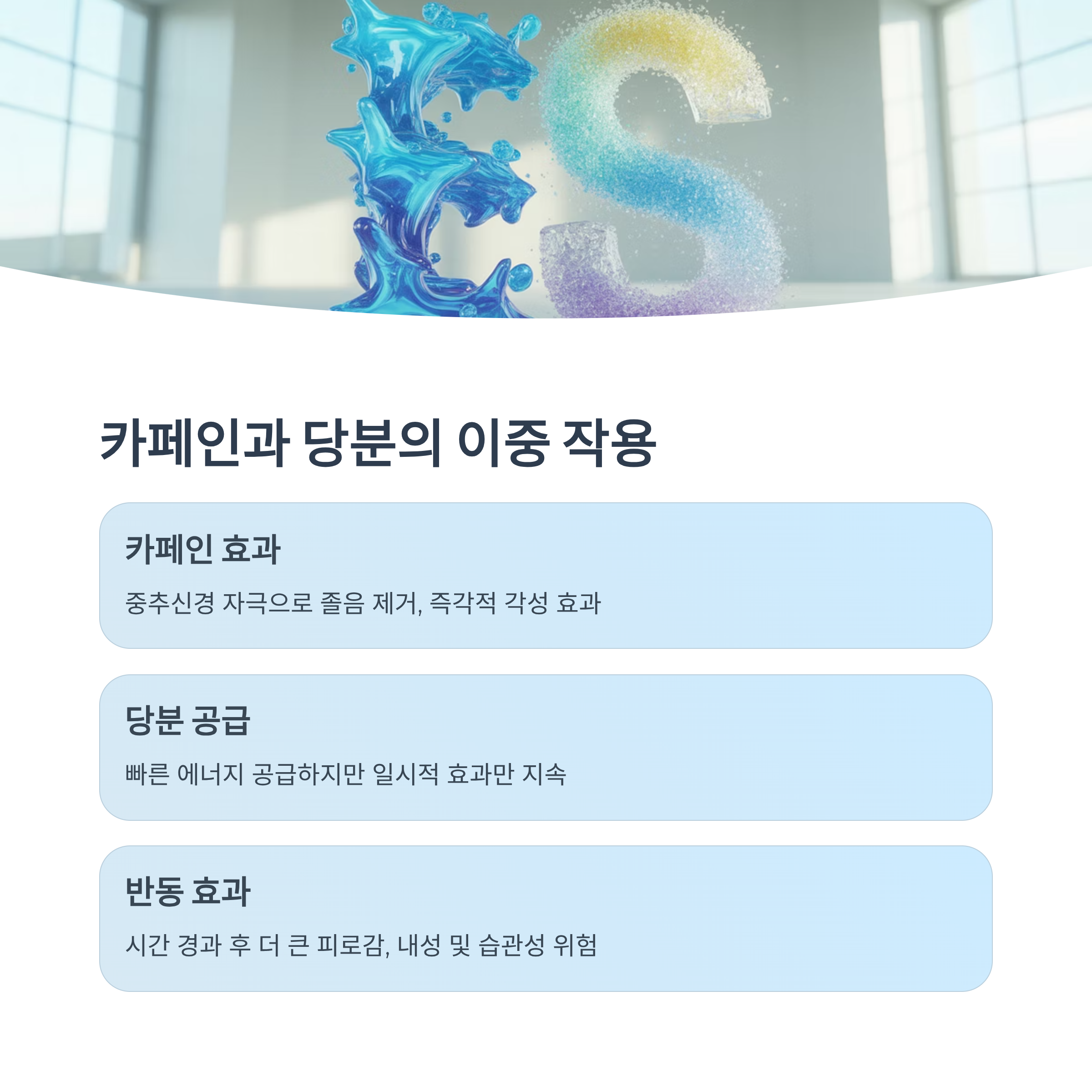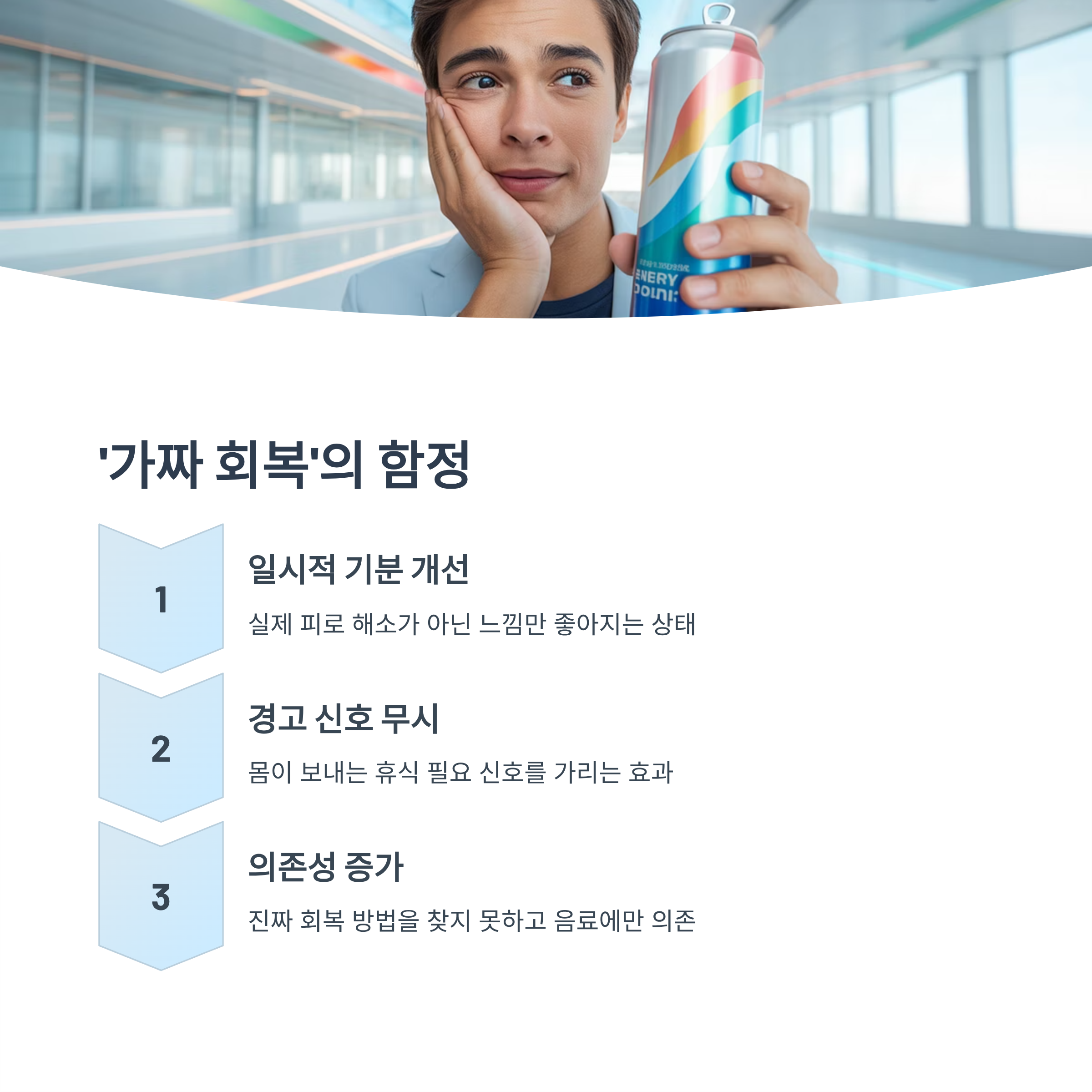 잠깐 정신이 번쩍 드는 느낌은 들지만, 일정 시간이 지나면 오히려 더 큰 피로감을 유발할 수 있습니다. 특히 반복적으로 마시게 될 경우, 내성이 생기거나 습관이 되어버릴 수도 있습니다.