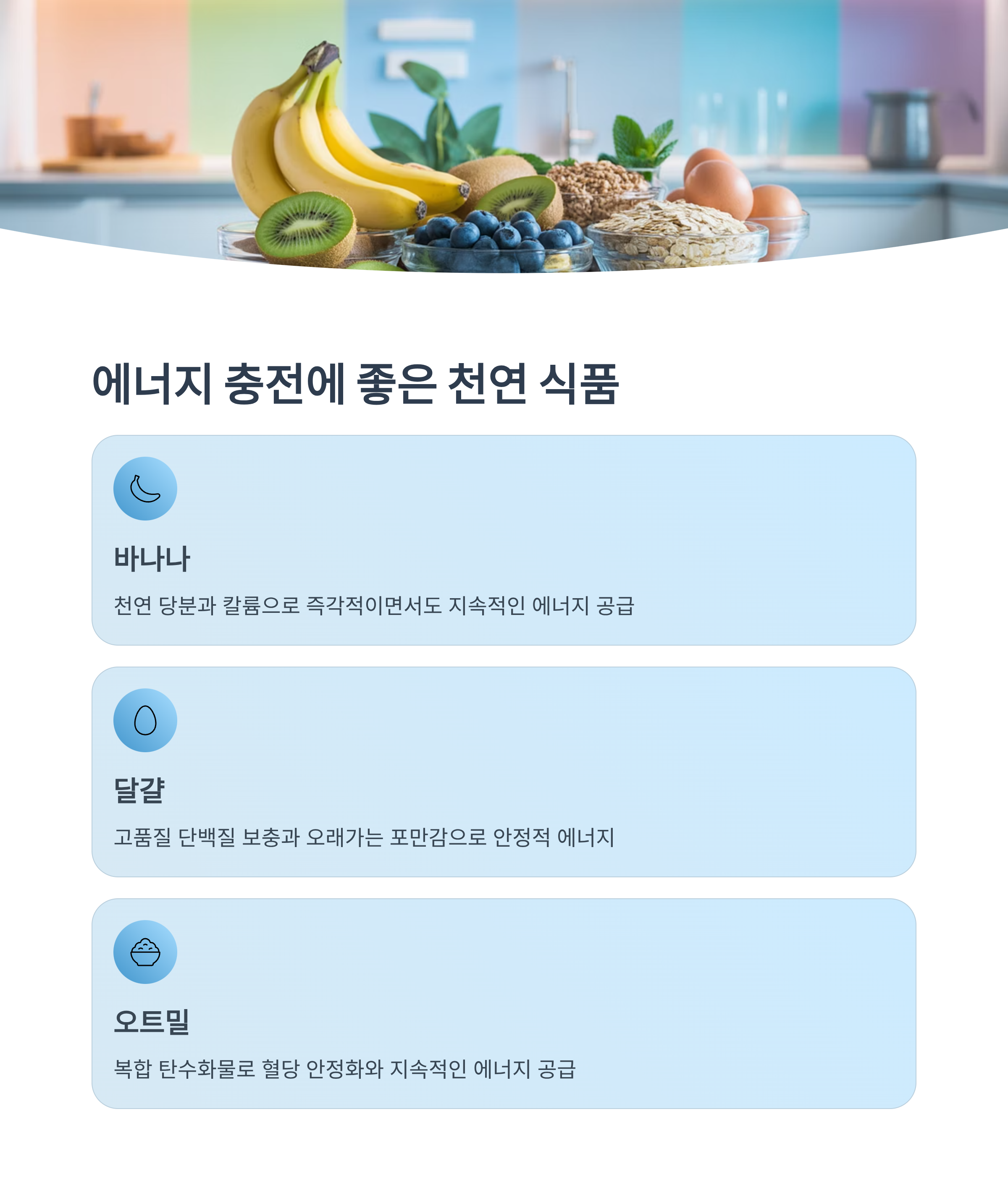 | 바나나 | 천연 당분, 칼륨 공급 |