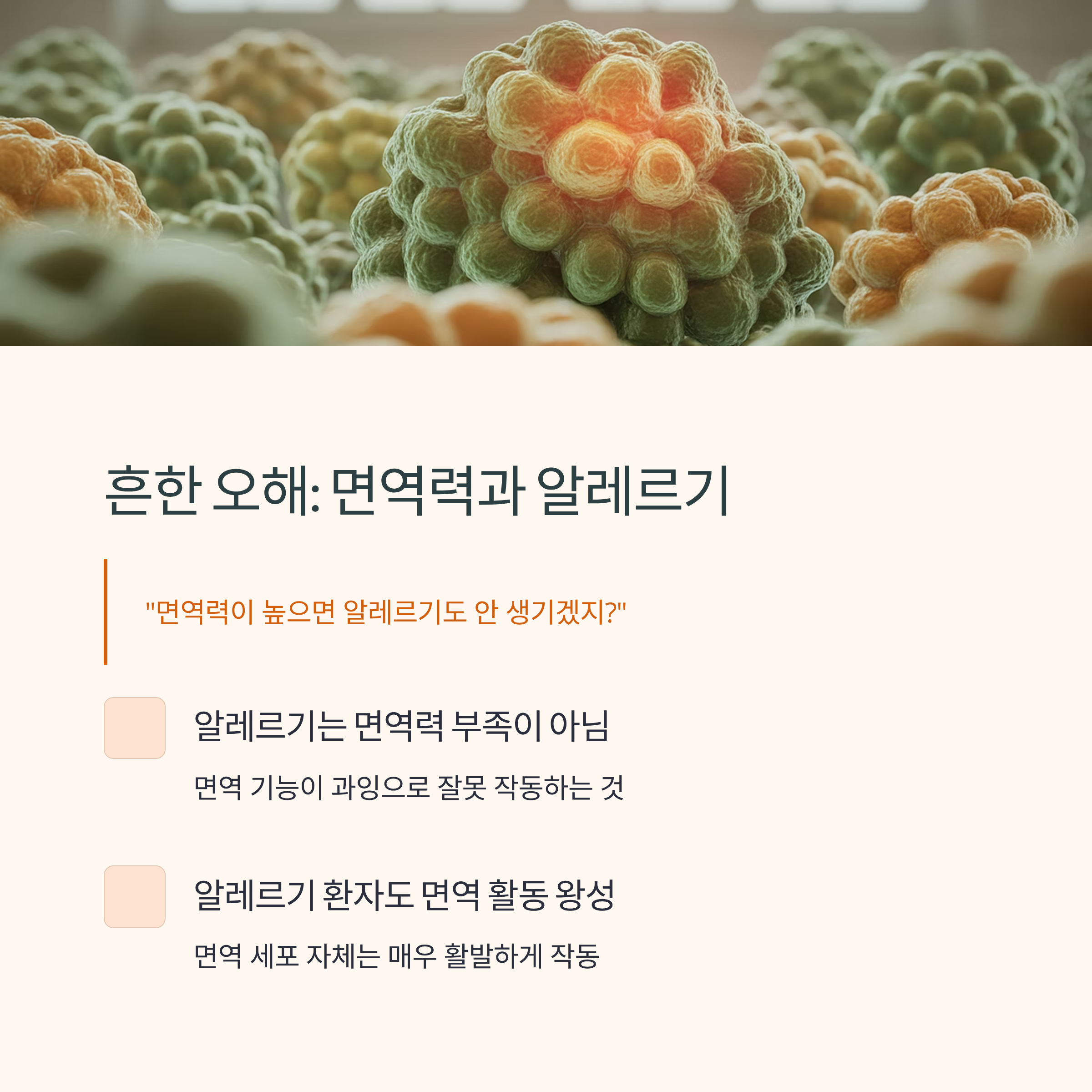 많은 분들이 "면역력이 높으면 알레르기도 안 생기겠지?"라고 생각하시지만, 꼭 그렇진 않아요.
